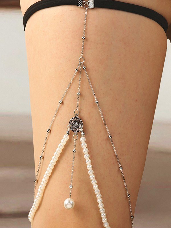 Layered Faux Pearl Leg Chain Harness