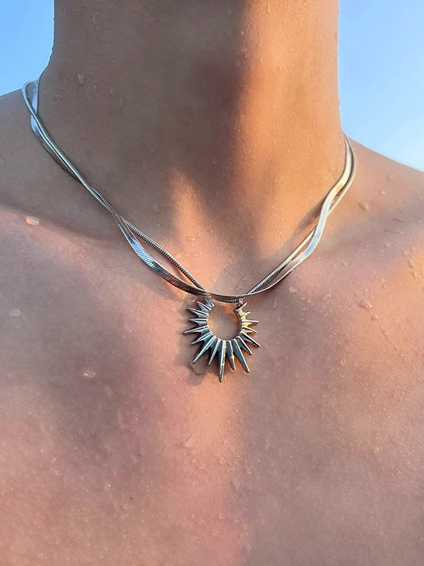 Men’s Double Layered Sun Pendant Necklace