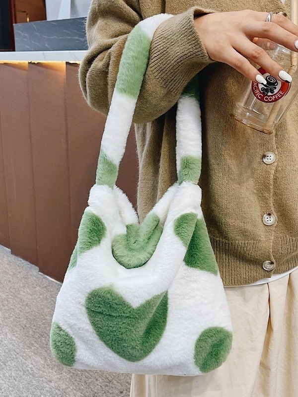Heart Pattern Fuzzy Shoulder Bag