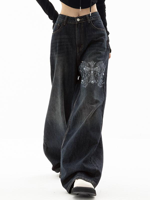 Cross Hot Diamond Blue Wash Baggy Boyfriend Jeans