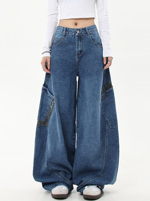 Washed Pleated Pockets Boyfriend Jeans
