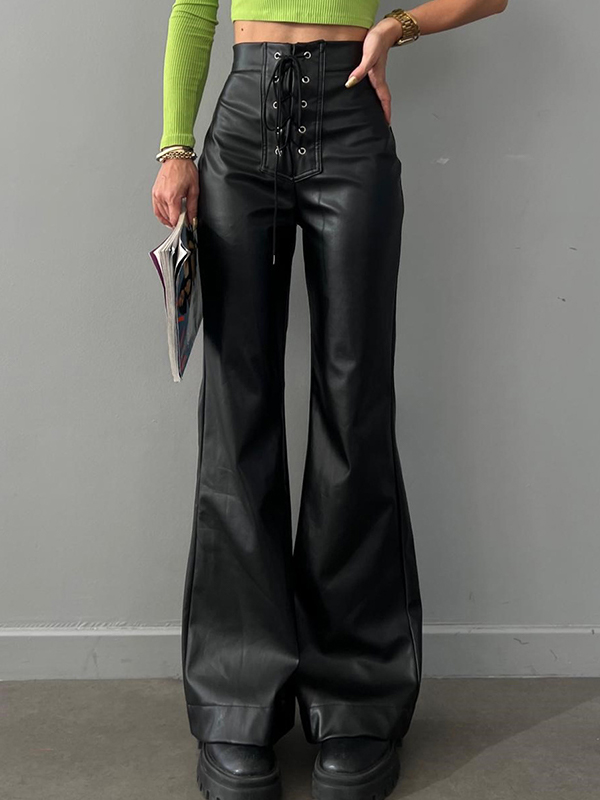 Solid Color Leather Pants