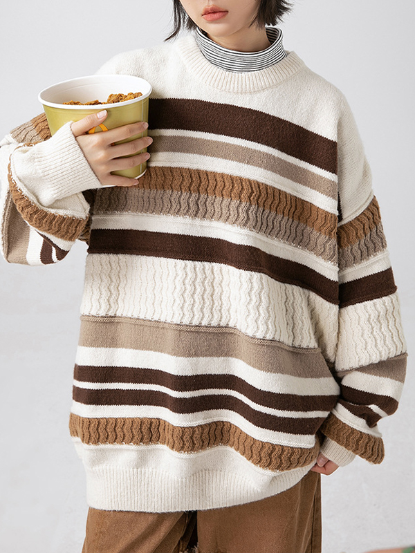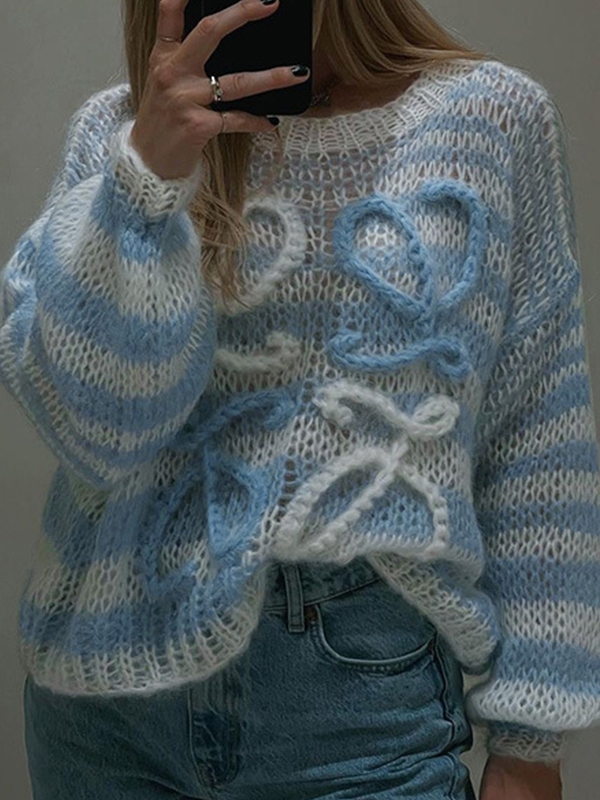 Contrast Color Splice Trumpet Sleeve Slim Sweater