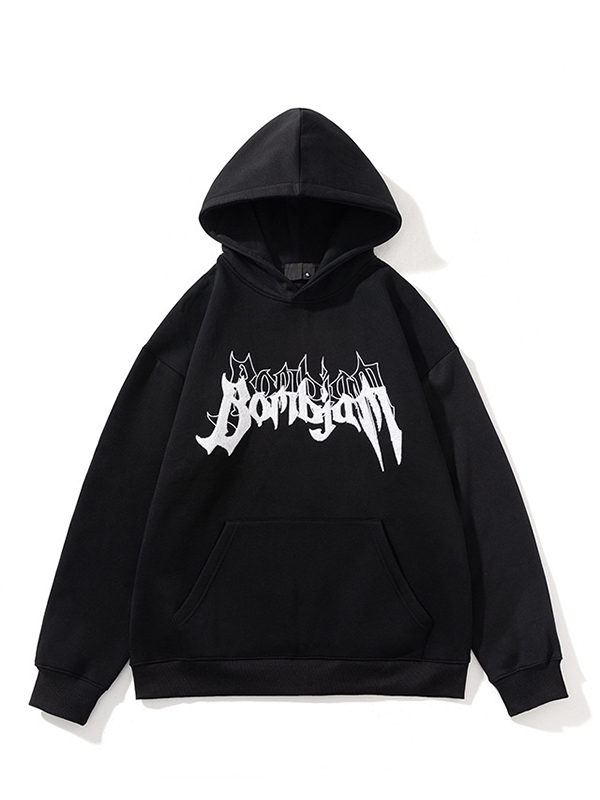 Distressed Contrast Color Embroidered Zip Up Oversized Hoodie