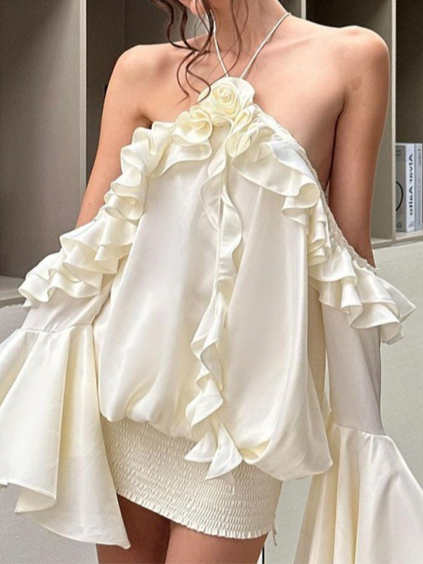 French Style Off-Shoulder Ruffled Bell Sleeves Mini Dresses