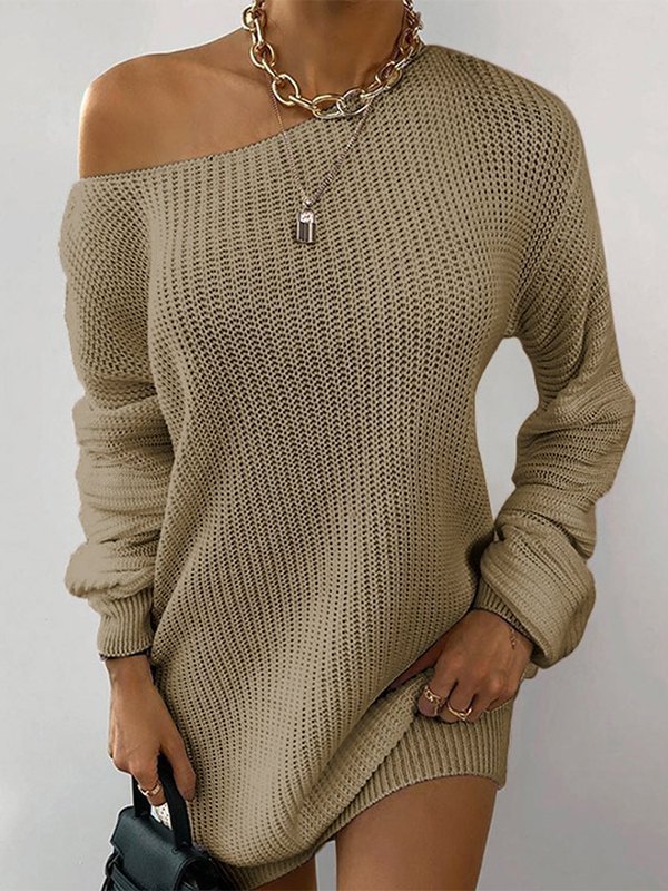 Multi-wear Lantern Sleeve Casual Sweater Dress