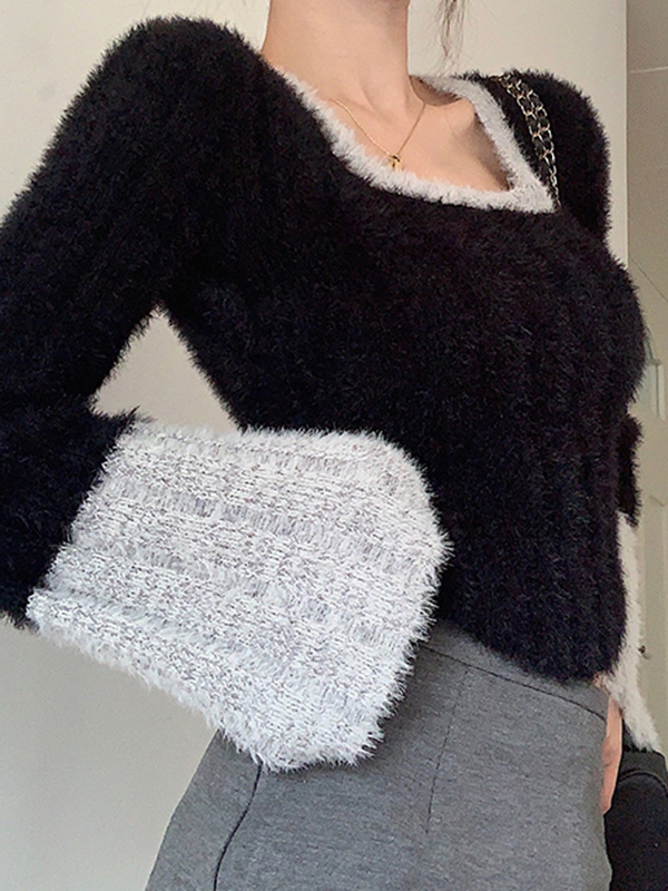 Contrast Color Splice Trumpet Sleeve Slim Sweater