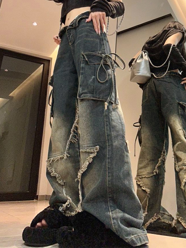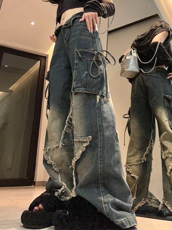 Star Shape Raw Trim: The star shape raw trim gives these jeans a vintage and street vibe.