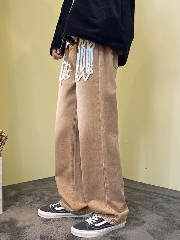 Description: It has fuzzy letter motif on the front leg, features multi pockets design, and with a metal zip button detailing.