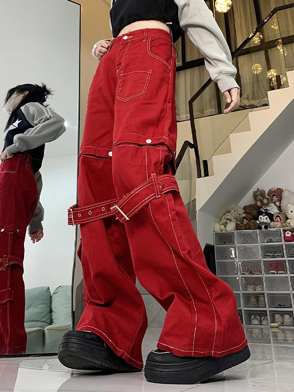 Unique Design: These pants feature a top stitching and buckle design, making them a standout piece in any wardrobe. The removable parts add a versatile touch, allowing you to change up yourStyle as you please.