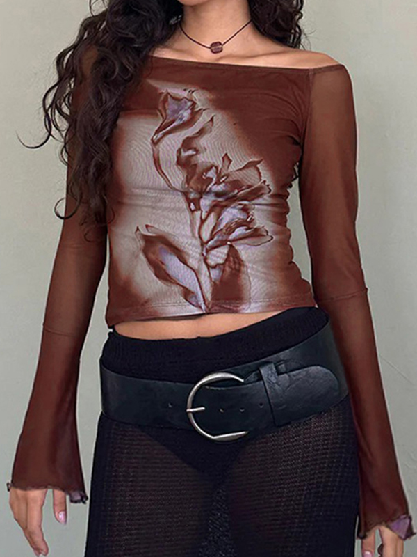 Floral Print Mesh Long Sleeves Tee