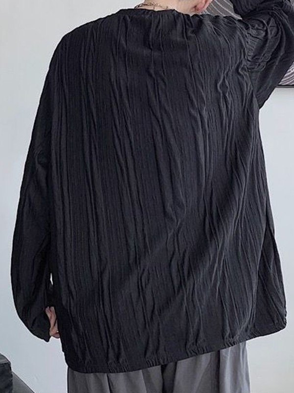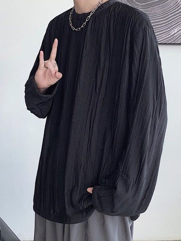 Description: Updated some versatile long-sleeve tees for staple interior outfits. This tee for mens shaped to a fitted silhouette, and has ruched texture design through the body.