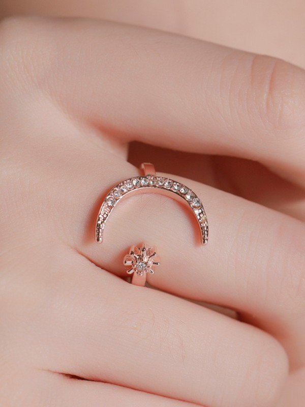 Rhinestone Crescent Moon Cuff Ring