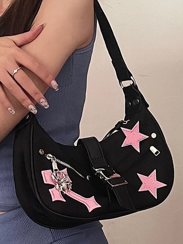 Cross Star Buckled Pu Leather Shoulder Bag