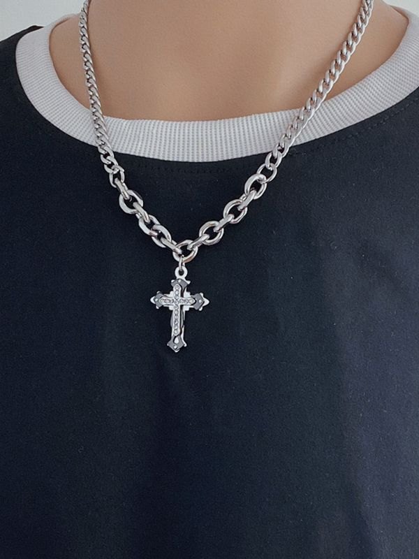 Men’s Rhinestone Cross Pendant Chain Necklace
