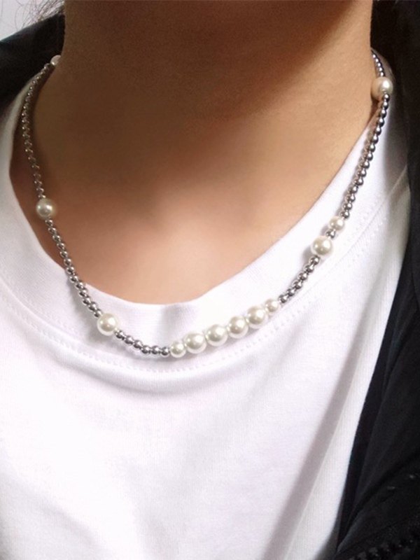 Silver Beads Faux Pearl Necklace